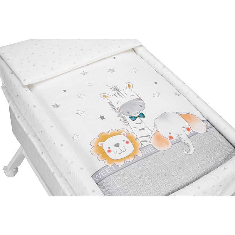 Το σετ περιλαμβάνει ένα εξαιρετικής ποιότητας, άνετο στρώμα, μαξιλαράκι και μαξιλαροθήκη και ένα all season παπλωματάκι που πλένεται εύκολα. Τα υφάσματα είναι 100% βαμβακερά.