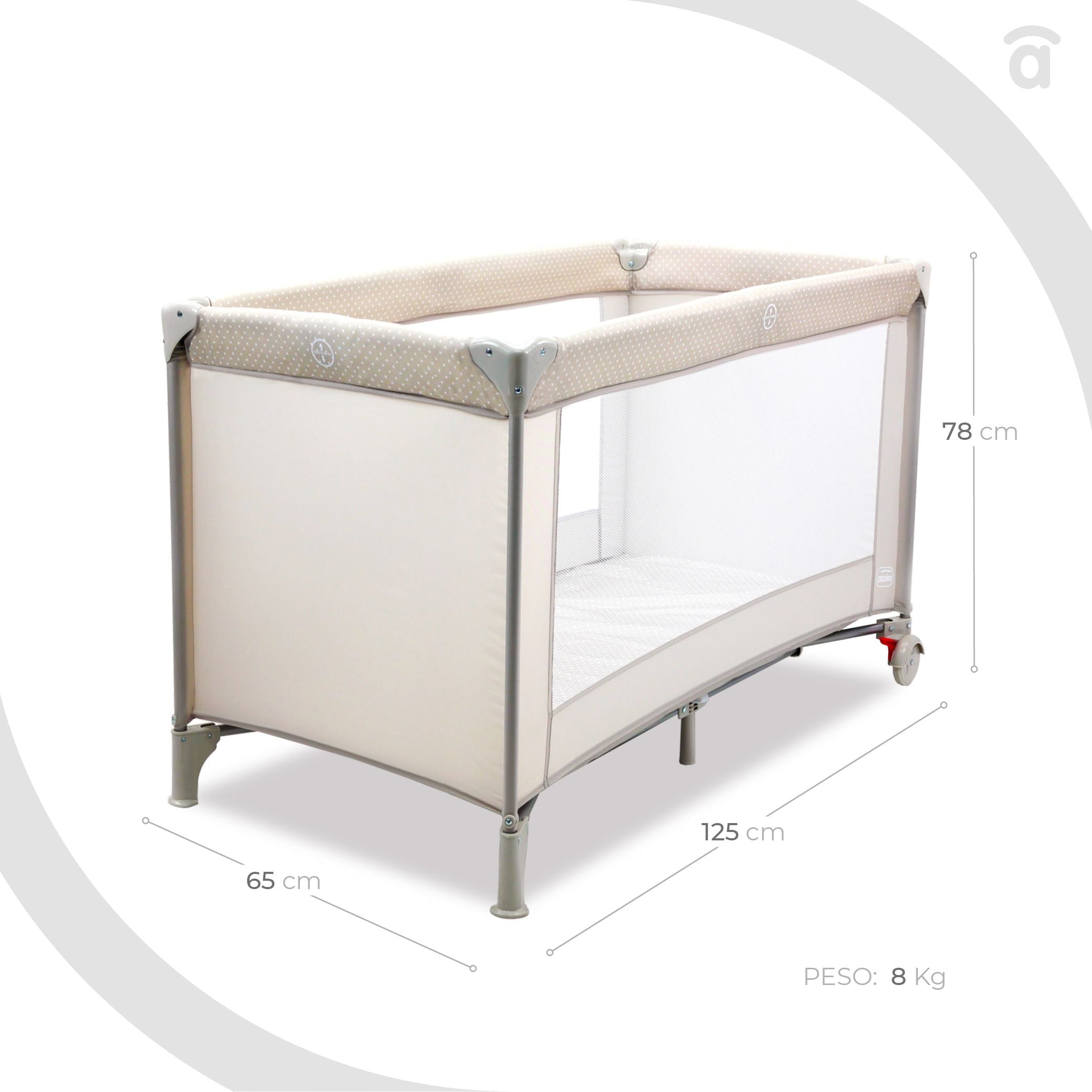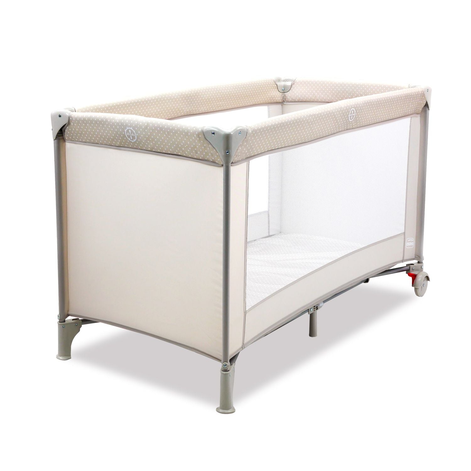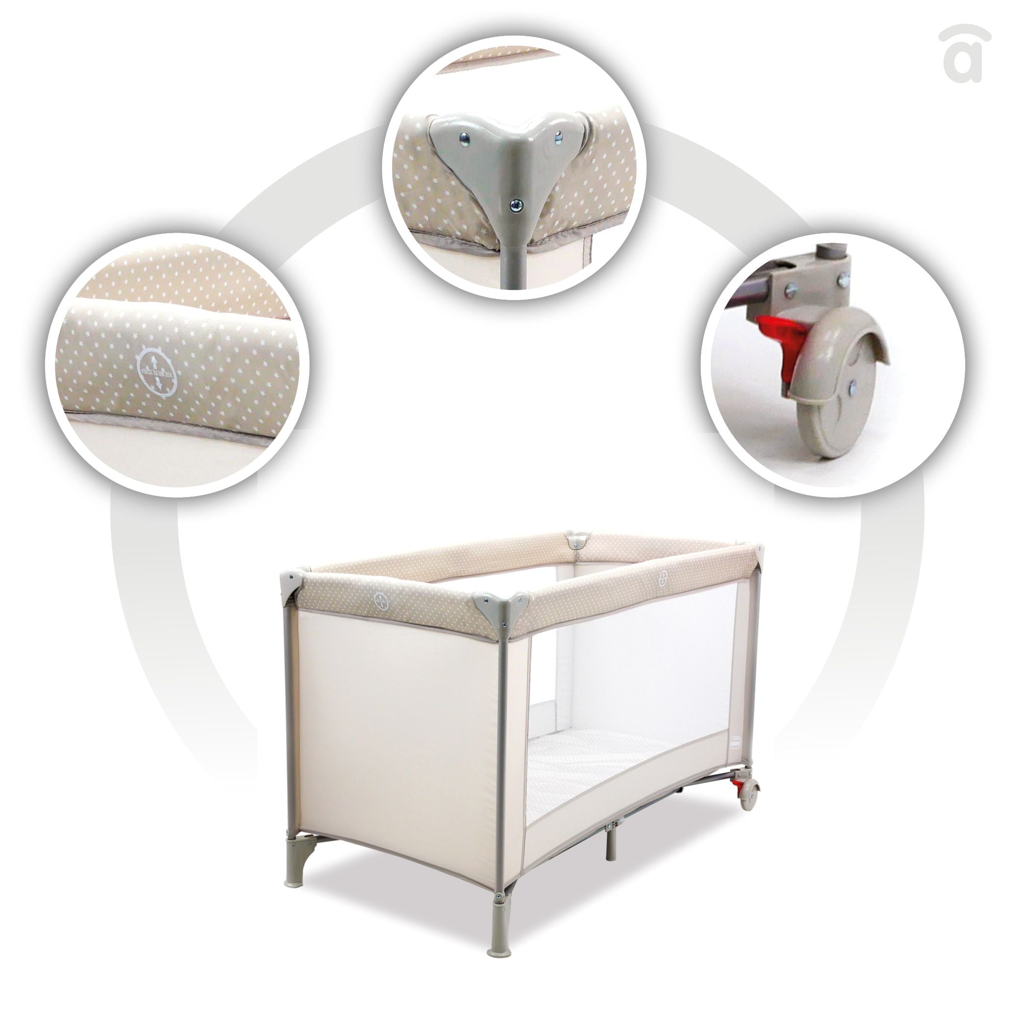 Αυτό το παρκοκρέβατο προσφέρει μια μεγάλη γκάμα για όλα τα γούστα, πάντα με πλαστικά που ταιριάζουν με το ύφασμα.