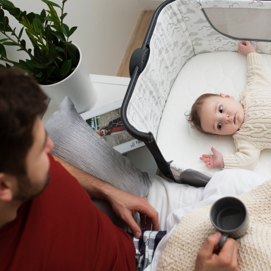 Το λίκνο διαθέτει ένα αποσπώμενο πλαϊνό, που ”πέφτει” όταν θέλετε να χρησιμοποιήσετε το λίκνο ενωμένο στο κρεβάτι σας, και ανυψώνεται και ασφαλίζει, έτσι ώστε να μπορείτε να χρησιμοποιήσετε το λίκνο όχι μόνο για συγκοίμηση, μα και ώς απλό κρεβατάκι. Η πλευρά αυτή διαθέτει διαμπερές ανθεκτικό πλέγμα, έτσι ώστε, όταν το λίκνο χρησιμοποιείται ανεξάρτητα από το δικό σας κρεβάτι, να εξασφαλίζεται η σωστή κυκλοφορία του αέρα στο εσωτερικό και, φυσικά, να μπορείτε να παρακολουθείτε το μωράκι σας απ’όπου κι άν βρίσκεστε. Ακόμη, το λίκνο διαθέτει δυνατότητα κλίσης υπο γωνία, για ναμπορείτε να βρείτε την τέλεια για τον ύπνο του μωρόυ σας θέση.