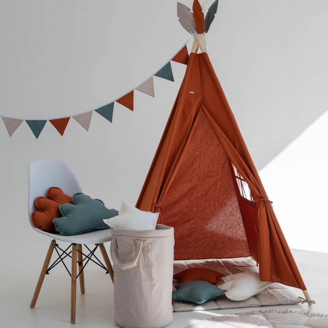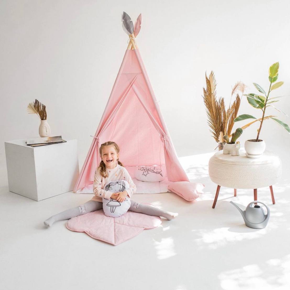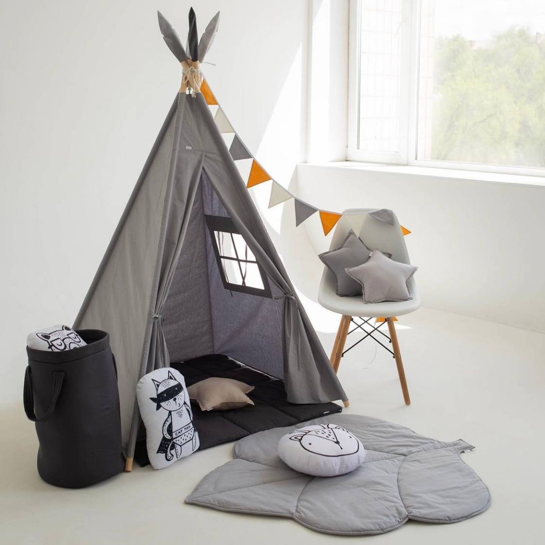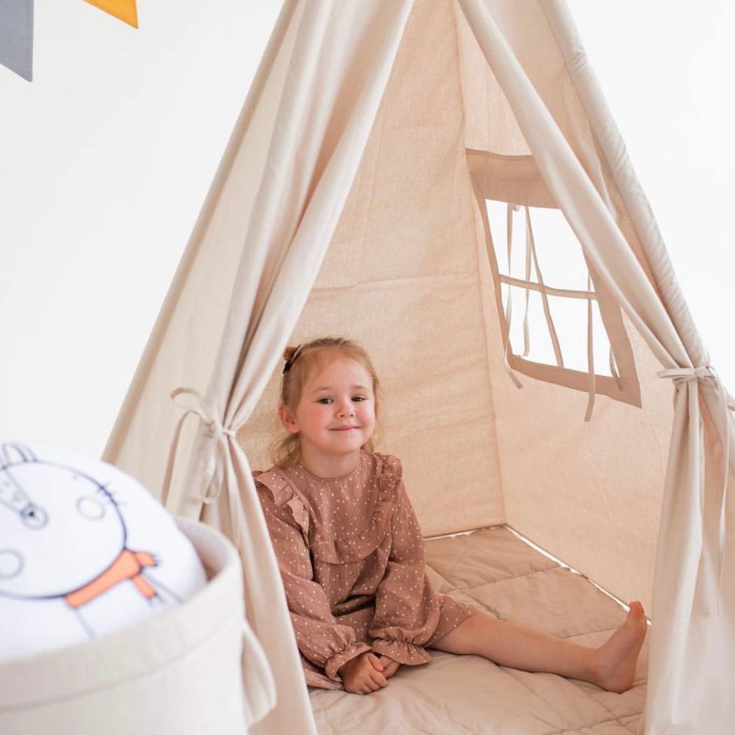 Σχήμα και κατασκευή: Η σκηνή teepee έχει κλασικό κωνικό σχήμα με έναν ή περισσότερους στύλους στήριξης στο κέντρο. Δημιουργεί έναν άνετο και ευρύχωρο χώρο όπου τα παιδιά μπορούν να παίξουν, να διαβάσουν βιβλία, να ζωγραφίσουν και να ζήσουν τις φαντασιώσεις τους.