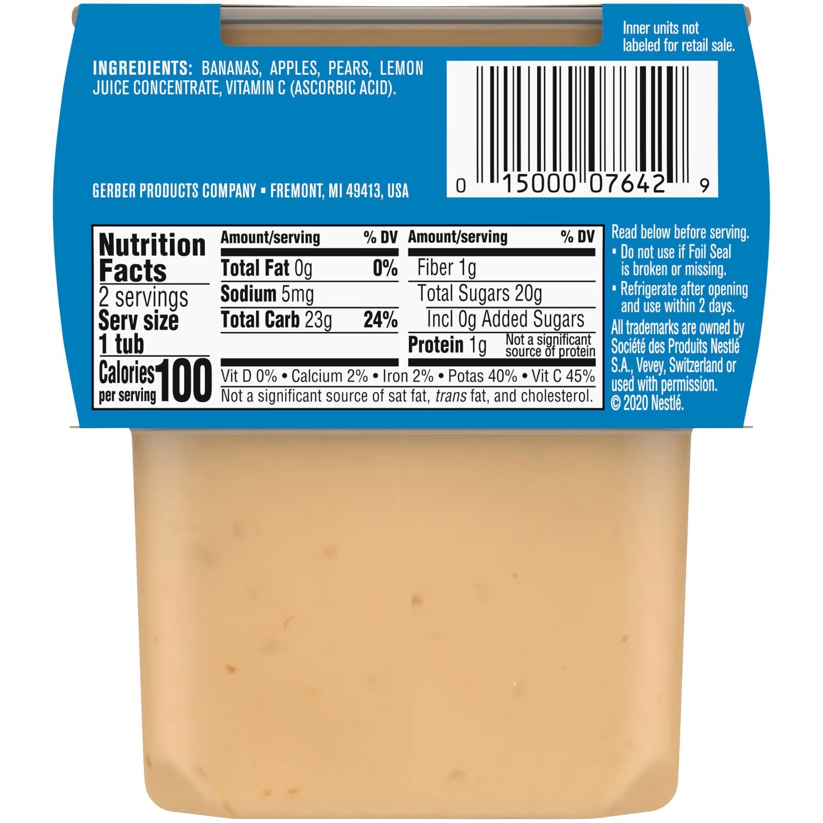 Μπανάνες, μήλα, αχλάδια, συμπυκνωμένος χυμός λεμονιού, βιταμίνη C (ασκορβικό οξύ).