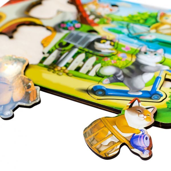 Το θεματικό υπόβαθρο αυτού του διαχωριστικού θα είναι ενδιαφέρον για τα παιδιά να το κοιτάξουν και να το μελετήσουν λεπτομερώς, ενώ τα 10 πολύχρωμα ένθετα με γάτες είναι εύκολο να τα βγάλουν με τα δάχτυλά τους και να τα ξαναβάλουν μέσα. Μπορείτε να χρησιμοποιήσετε τις γάτες για να μάθετε να μετράτε.